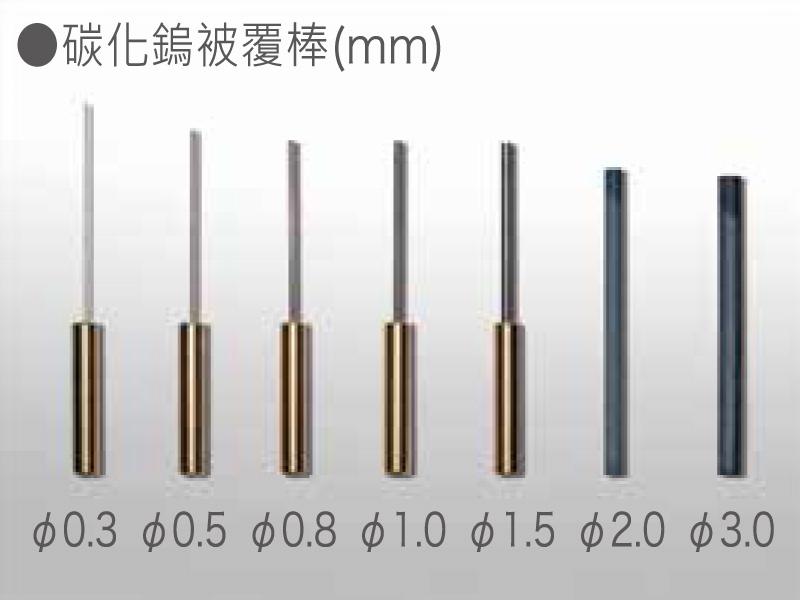 碳化鎢被覆棒尺寸 圓形 Ø 0.5x40mm , Ø 0.8x40mm , Ø 1.0x40mm , Ø 1.5x40mm , Ø 2.0x40mm , Ø 3.0x40mm 方形 1.5x2x40mm , 1.5x3x40mm , 2x4x40mm 更多詳細資料請參考原廠網站: https://www.sanwashoko.co.jp/%e6%94%be%e9%9b%bb%e8%a2%ab%e8%a6%86%e8%a3%85%e7%bd%ae.html | ||||||||||||||||||||||||||||