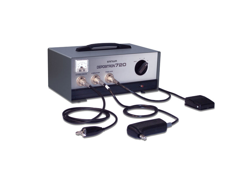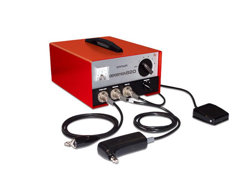 日本三和 (SANWA SHOKO) DEPOSITRON 720/820 碳化鎢被覆機 特色 放電金屬被覆機是以放電加工的原理,把超硬碳化鎢合金(tungsten carbide)在短時間內,很容易且迅速被覆(coating)在工作物表面上,並且滲透到工作物表面,可增加披覆表面的耐磨性、耐衝擊性及耐熱性,被覆厚度及粗細度可調整,被覆完工件表面被覆厚度範圍約在0.01mm-0.03mm,表面粗細度4-15μHmax,表面硬度達HV1100(約HRC70.3度)以上,可用於SK 、SKD 、SKH 、SKD61 、carbide 等材質。 適用範圍及效果 1. 適用于耐衝擊性的模具(沖壓模、鑄模、塑膠模...等),可增加200%-300%壽命,可防止連續沖模跳屑問題. 2. 適用于耐高熱接觸面(壓鑄模、鋁模注入口...等),可增加200%-300%壽命. 3. 適用于切削工具、刀具(刀、車刀、絞刀、鑽刀頭...等)表面被覆,可增加300%-500%壽命. 4. 適用于夾具、夾頭之被覆,增加耐磨功能. 規格